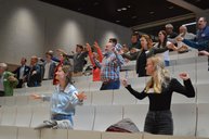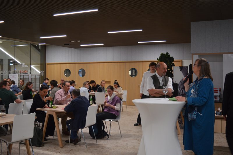 Am Abend des 24. April fand die Abendveranstaltung statt, welche ebenfalls in Kooperation mit dem Land Tirol veranstaltet wurde. Die Teilnehmenden konnten den Konferenztag nicht nur gemütlich bei einem gemeinsamen Abendessen ausklingen lassen, sondern sich auch einer kreativen Herausforderung stellen. Dabei sind fünf spannende und lustige Geschichten entstanden, die dem Publikum vorgetragen wurden.