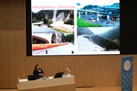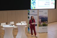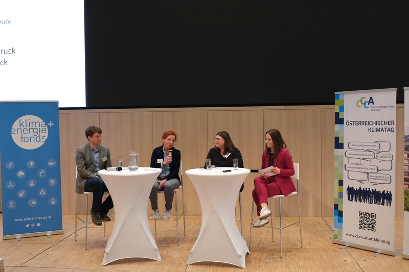 Im Anschluss fand die Keynote von Margreth Keiler (Universität Innsbruck) mit dem Titel „Klimawandel, Risiko und Resilienz“ zentrale Herausforderungen für den Lebens- und Wirtschaftsraum Alpen (hier geht es zur Aufzeichnung der Keynote) statt. Darin wurde deutlich, dass der Alpenraum besonders stark vom Klimawandel betroffen ist – etwa durch zunehmende Naturgefahren, Veränderungen im Wasserhaushalt und Herausforderungen für Tourismus, Landwirtschaft und Infrastruktur. Gleichzeitig zeigte Keiler auf, wie wichtig eine strategisch geplante Anpassung und ein interdisziplinärer Zugang zur Förderung der Resilienz sind. In der anschließenden Paneldiskussion mit dem Thema "Schöne Aussicht, unsichere Zukunft? Wie der Alpenraum den Spagat zwischen Naturidylle, Wirtschaftsraum und Klimaresilienz schaffen kann." diskutierten Daniel Huppmann (IIASA), Margreth Keiler (Universität Innsbruck) und Christine Schermer (Stadt Innsbruck), wie der Alpenraum klimaresilient gestaltet werden kann, ohne seine ökologischen, sozialen und wirtschaftlichen Qualitäten zu verlieren. In der Paneldiskussion wurde betont, dass eine klimaresiliente Zukunft im Alpenraum nur durch eine enge Zusammenarbeit zwischen Wissenschaft, Politik, Verwaltung, Wirtschaft und Zivilgesellschaft möglich ist. Damit Wissenschaft wirksam zur Transformation beitragen kann, braucht es stabile Strukturen für transdisziplinären Austausch – derzeit fehlen diese weitgehend. Entsprechend wurde an Universitätsleitungen und Ministerien appelliert, solche Aktivitäten auch im Hinblick auf wissenschaftliche Karrieren stärker zu fördern. Zugleich zeigte sich die zentrale Rolle der Bürger:innenbeteiligung: In vielen Fällen ist das Bewusstsein in der Bevölkerung für die Notwendigkeit und Akzeptanz von Klimamaßnahmen weit entwickelt als vorweg angenommen. Um wirksame Maßnahmen umzusetzen, müssen alle sozialen Gruppen aktiv eingebunden und unterschiedliche Perspektiven berücksichtigt werden – denn nur gemeinsam kann die Klimakrise bewältigt werden.