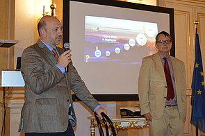 Neben vielen Vertreter_innnen der CCCA Mitgliederinstitutionen waren mit dem Bundesministerium für Bildung, Wissenschaft und Forschung (BMBWF) und dem Bundesministerium für Nachhaltigkeit und Tourismus (BMNT) beide Ministerien vertreten, die als langjährige Partner und Unterstützer des CCCA das Fundament zum bisherigen Erfolg des Vereins gelegt haben. Sektionschef Jürgen Schneider und Helmuth Hojesky (BMNT) sowie Christian Smoliner (BMBWF) ließen das CCCA als ‚Jubilar‘ hochleben.