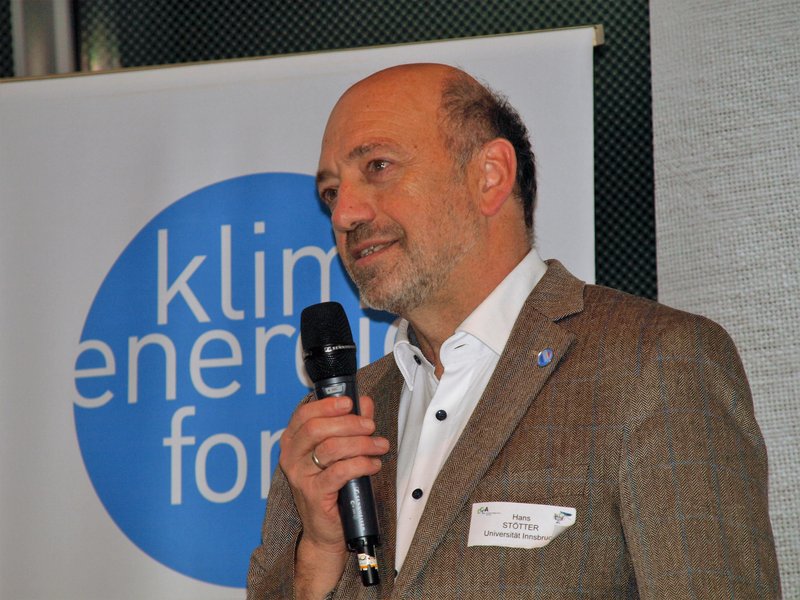 [Translate to English:] Hans Stötter von der Universität Innsbruck begrüßte die rund 80 Gäste des Jubiläums.