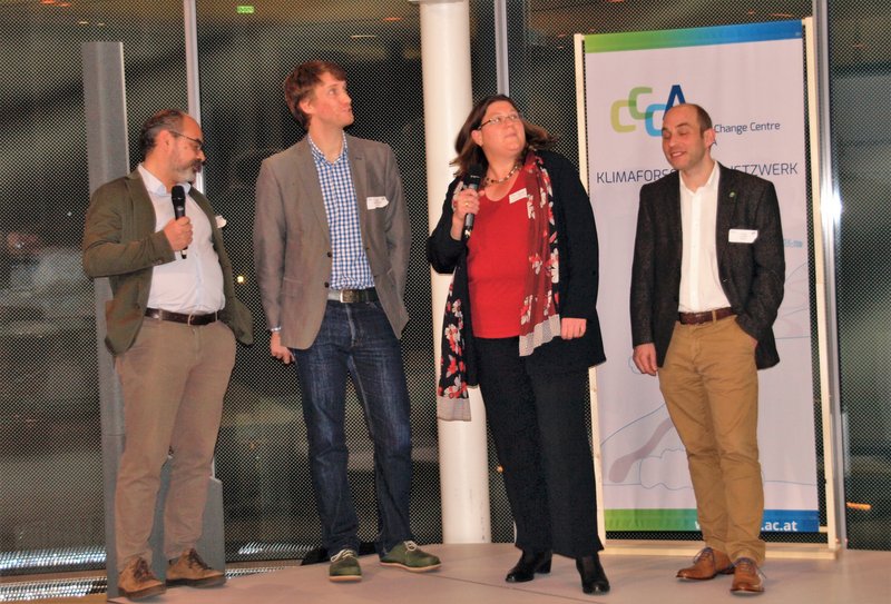 [Translate to English:] Keywan Riahi (IIASA), Daniel Huppmann (IIASA), Margreth Keiler (UIBK) und Harald Rieder (BOKU) stellen den kommenden Prozess zur Erstellung des AAR2 vor.