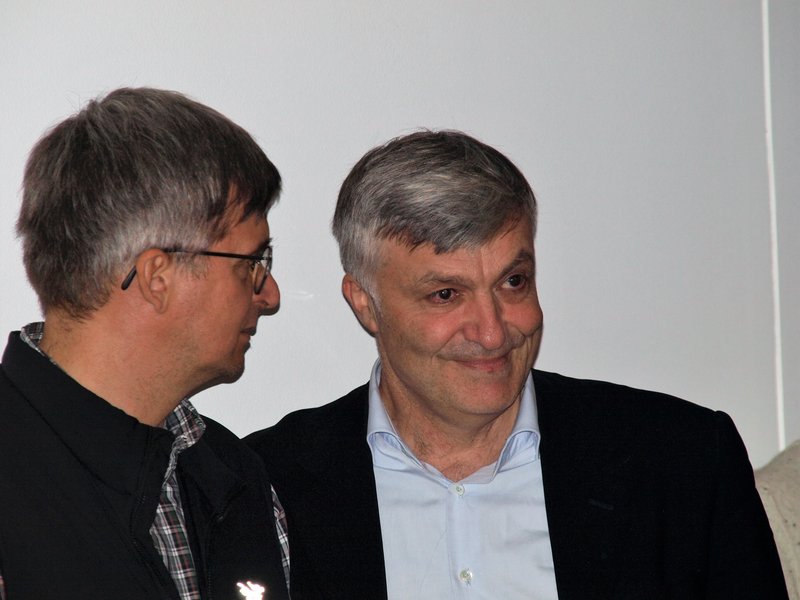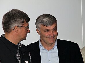 [Translate to English:] Hier im Gespräch mit Gründungsvorstands-Mitglied Hans Stötter (UIBK).