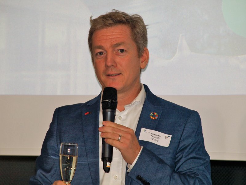 [Translate to English:] Die Eröffnungsrede hielt Vorstands-Mitglied Alexander Passer von der TU Graz.