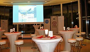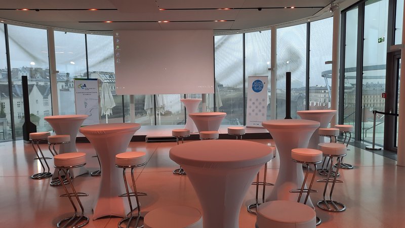 [Translate to English:] Die Ruhe vor dem Sturm... Als Veranstaltungsort für das 10 Jahres Jubiläum wurde die "Libelle" im Museumsquartier Wien gewählt. Hier fand ab 16:00 Uhr das Get Together statt.