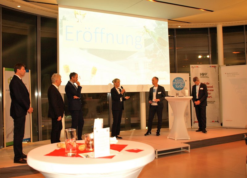 [Translate to English:] Günter Liebl (BMLRT), Ingmar Höbarth (KLIMAFONDS), Jürgen Schneider (BMK), Barbara Weitgruber (BMBWF), Marcus Wadsak (ORF), Christian Holzer (BMK)