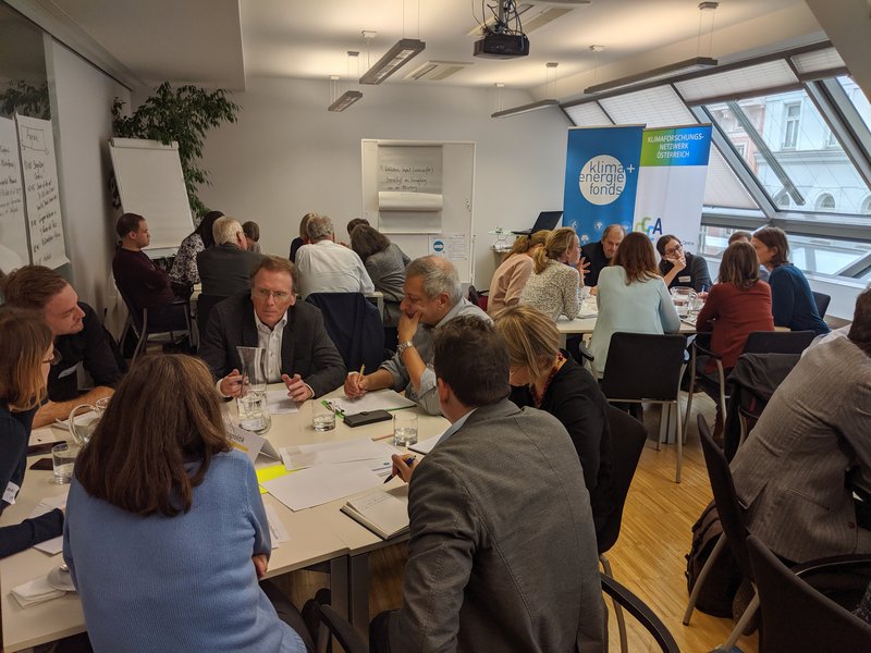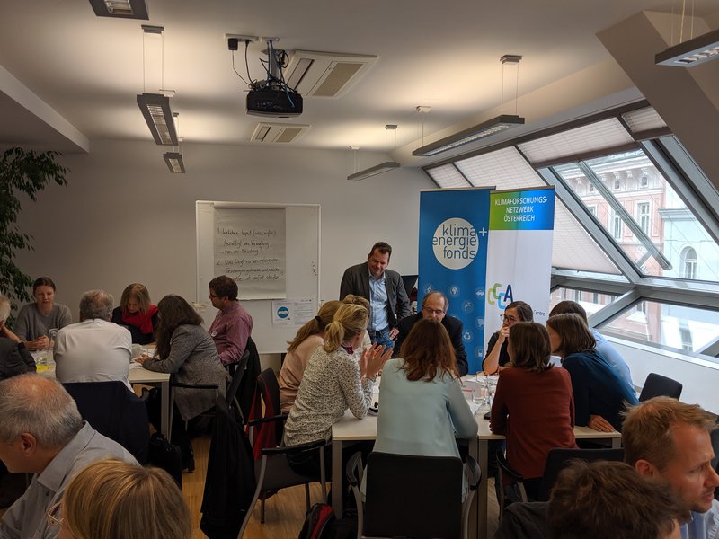 At the premises of the Climate and Energy Fund, around 30 participants from research and public administration came together to discuss the above-mentioned topic and exchange information. After brief welcoming remarks from DI Ingmar Höbarth (Climate and Energy Fund), Dr. Barbara Kronberger-Kießwetter (BMNT) and Dr. Isabella Uhl-Hädicke (CCCA Board, University of Salzburg), the dialogue kicked off with two short presentations from renowned researchers with relevant expertise. Dr. Ulli Weisz from the Institute of Social Ecology at the University of Natural Resources and Life Sciences gave an informative talk on "Social Aspects of Climate Change – Heat". This was followed by Prof. Daniel Barben from the Institute of Science, Technology and Society Studies at the University of Klagenfurt, who set the scene on "Social Aspects of Climate Policy".