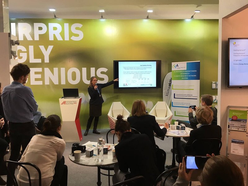 Under the umbrella of CCCA, numerous Austrian researchers presented their latest project results at the Austrian and EU Pavilions of the 24th UN Climate Conference (COP24) from 3–14 December 2018 in Katowice, Poland. The focus was primarily on exchanging ideas with international conference participants on a range of research topics. CCCA thus gave Austrian organisations/researchers — funded by the BMNT — the opportunity to present on this international stage and to be present as part of the Austrian delegation at COP24.
