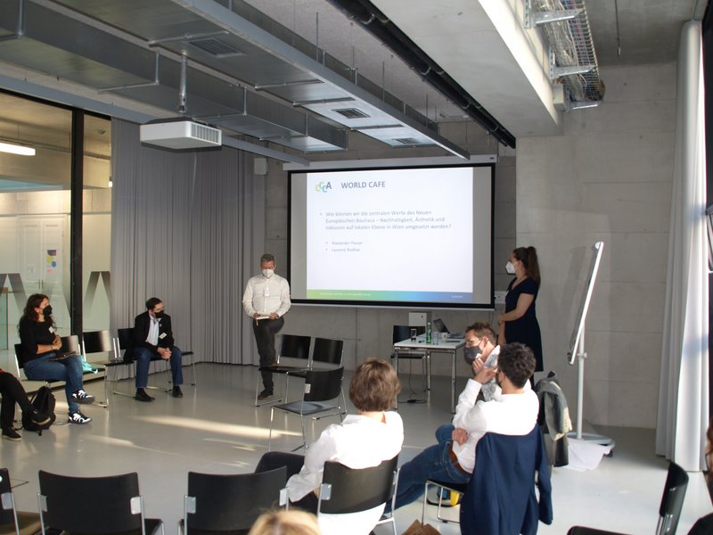 The CCCA Administration Workshop with the City of Vienna on the topic of "We're building the future! Sustainability, aesthetics, and inclusion in construction and urban planning" was opened by Andreas Januskovecz, Head of Climate Affairs for the City of Vienna, before scientific inputs from Alexander Passer (TU Graz), Karin Raith (die Angewandte), Tanja Tötzer (AIT), Hannes Gröblacher (atelier KOMBINAGE) and Sebastian Seebauer (Joanneum Research) served as a basis for discussion amongst the approximately 35 experts from science and public administration. The content was then explored further in a World Café format.