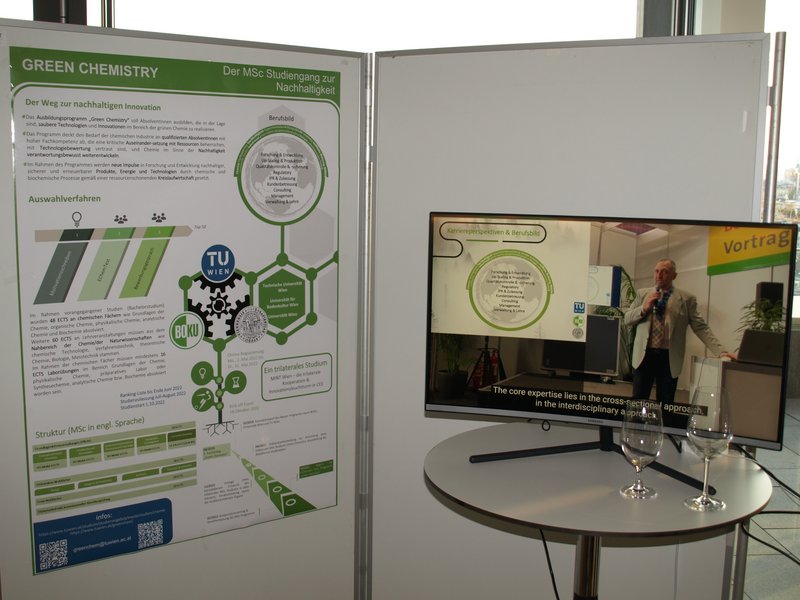 "Urban Space in Transition" was this year's Icebreaker theme, which was opened by Johannes Fröhlich (Vice-Rector of TU Wien). Short inputs from Karin Raith (die Angewandte) and Günter Emberger (TU Wien), as well as a short film including a discussion about the Zuchtgletscher project by Christian Ruschitzka and Ulrike Payerhofer (die Angewandte), paved the way for a dialogue between science and art. With information stands on the media management of TU Bib-IT, the MSc programme in Green Chemistry, and the doctoral programme CO2Refinery, TU Wien showcased a selection of its breadth of engineering sciences in relation to climate change. The pre-conference day wound down over a good glass of wine, regional delicacies, and stimulating conversations on the terrace of TUtheSky, with a stunning view over evening Vienna.