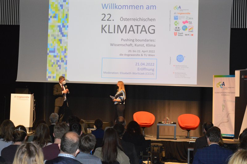 The 22nd Klimatag was held entirely under the motto "Pushing boundaries: Science, Art, Climate". Together with TU Wien, which served as host of the Icebreaker, the University of Applied Arts Vienna provided the ideal setting for this: as a University for Future, die Angewandte takes on the challenges of the global climate crisis, focusing amongst other things on transdisciplinary and creative engagement with the subject. In keeping with the motto, artistic research projects and projects from art, design and architecture were therefore presented alongside projects from classical climate and climate impact research.