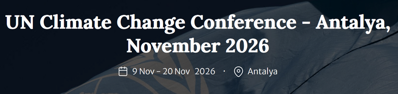 The 31st UN Climate Conference (COP31) will take place from 9 to 20 November 2026 in Antalya, Turkey.