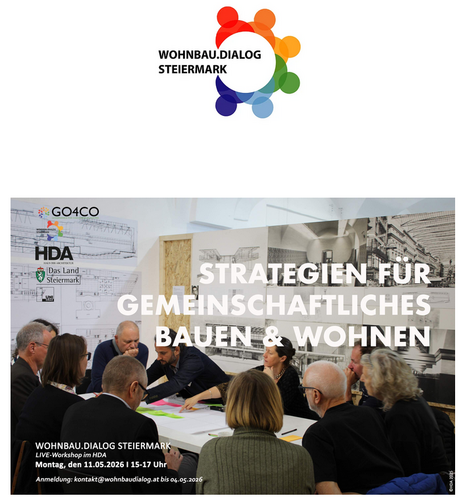 At the dialogue, we'll be presenting the results of our three-year research project GO4CO (Governance for Cohousing in Austria) and exploring them further together with you. Registration is already open — more details to follow.
