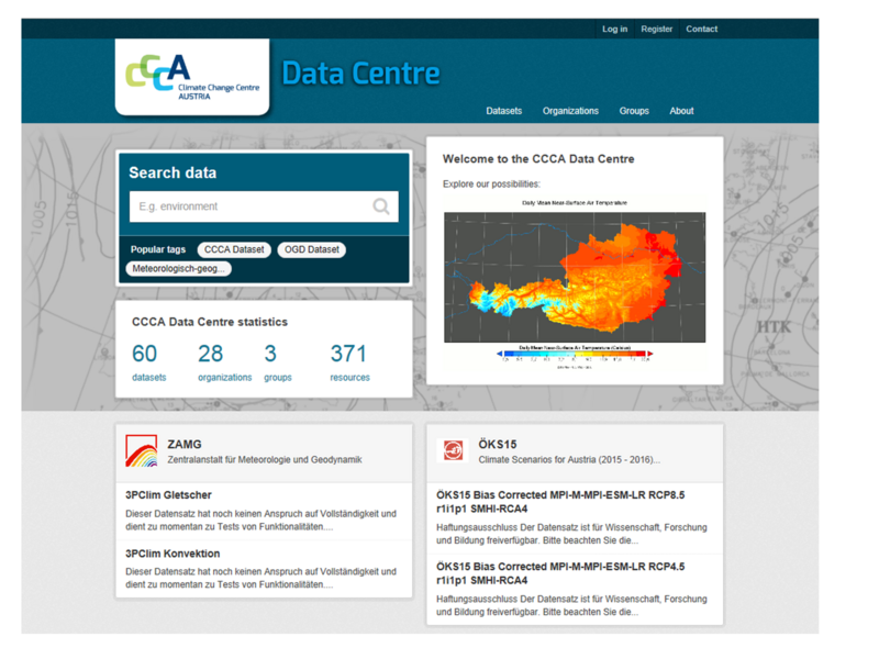 To mark the launch of the data portal, 370 datasets are currently available – including, for example, the latest high-resolution Austrian climate scenarios (ÖKS15) as outputs from research projects. At present, the majority of these have been provided by the Wegener Center for Climate and Global Change at the University of Graz and GeoSphere Austria. Further institutions from both the research sector and beyond are currently being actively encouraged to publish their data in the CCCA Data Centre.