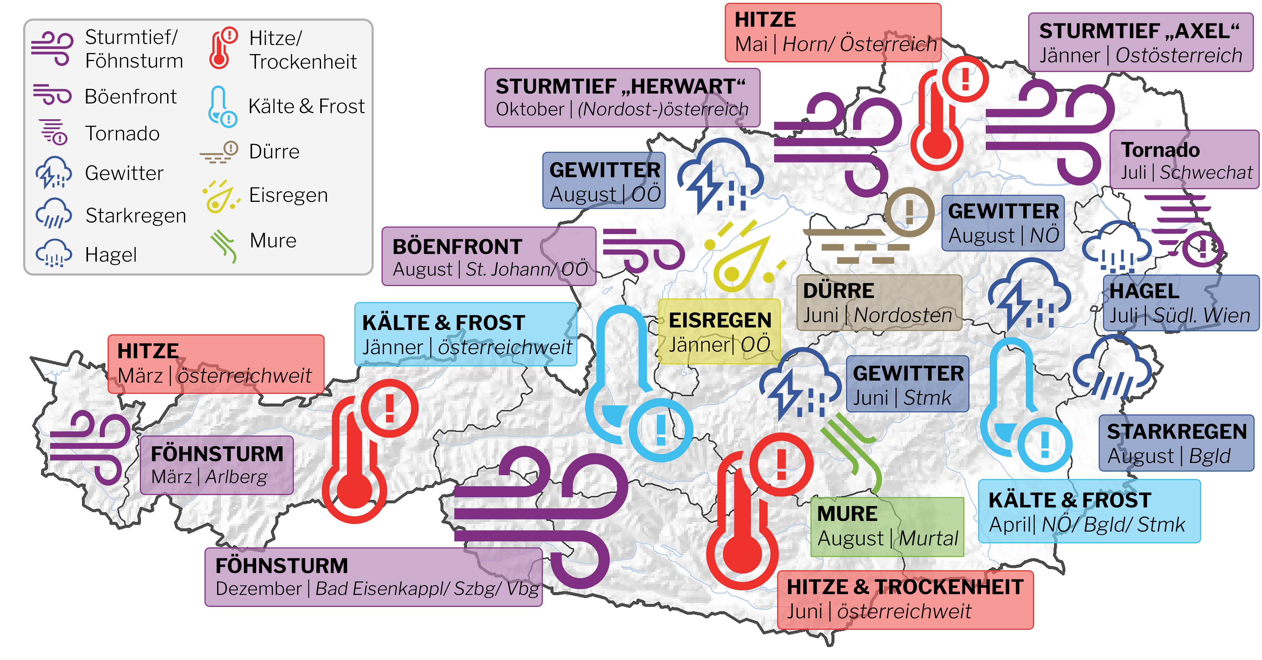 You can download the climate status report on "Climatic highlights and weather events with damage relevance in 2017" for Austria here.