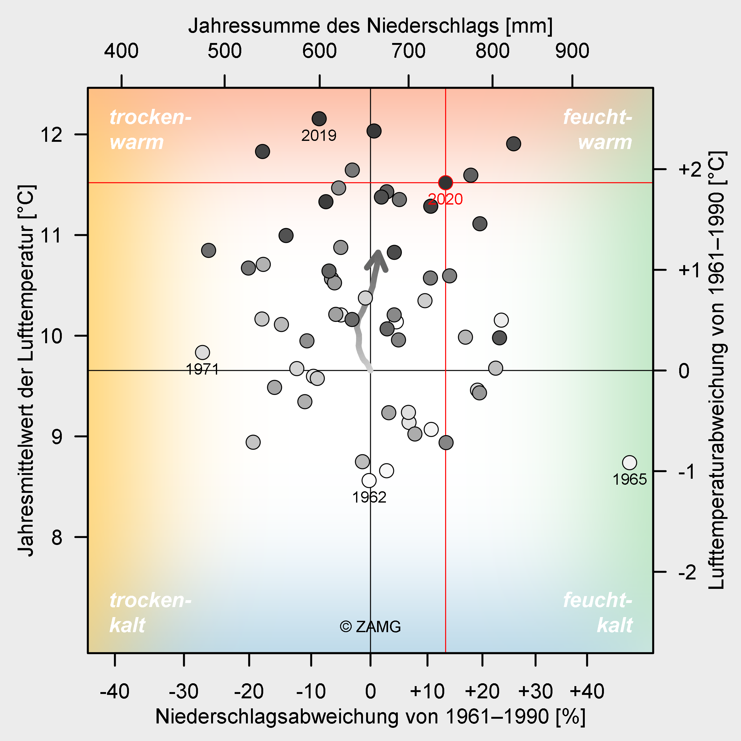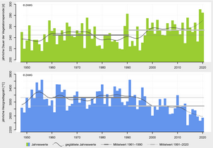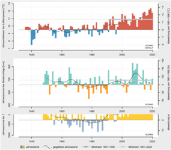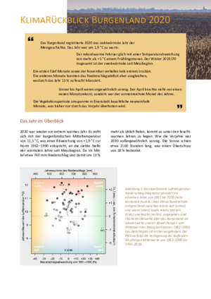 In 2020, Burgenland recorded its seventh warmest year in measurement history. The year was 1.9 °C too warm. The record-warm February, with a temperature anomaly of more than +5 °C, resembled a spring month. The winter of 2019/20 as a whole is the second warmest since measurements began. The first five months as well as November were partly extremely dry. However, the other months were able to compensate for the precipitation deficit, resulting in the year being 13% too wet overall...