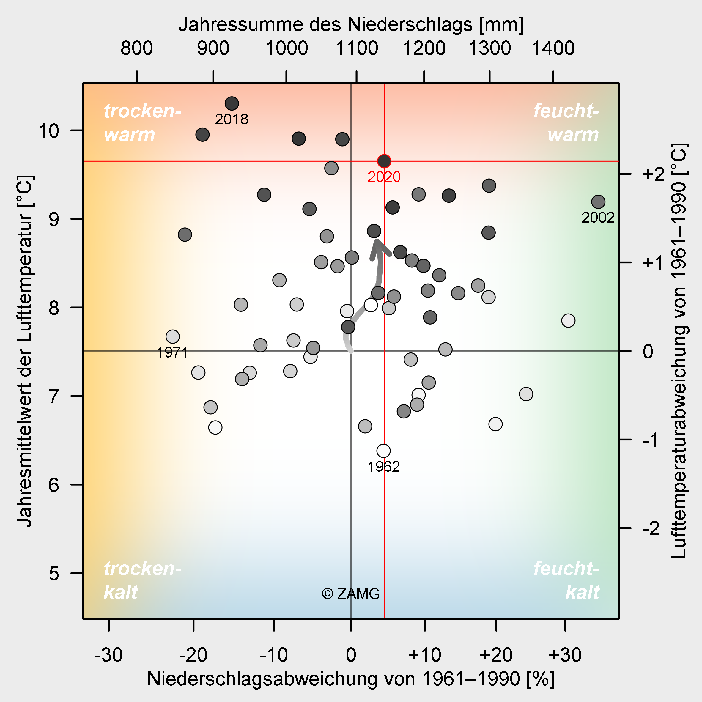 Upper Austria recorded 2020 as the fifth warmest year in its measurement history. The year was 2.1 °C too warm. The second warmest February rounded off what was also the second warmest winter in climate records. With an extreme temperature deviation of almost +5 °C, it resembled a spring month. Precipitation was unevenly distributed throughout the year. February was unusually wet in Upper Austria, while November was particularly dry...