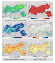 When using figures and graphics, please cite as follows: © Climate Review Tyrol 2020, CCCA (ed.), 2021. Content and graphics from this report may be used for non-commercial purposes with acknowledgement of the copyright.