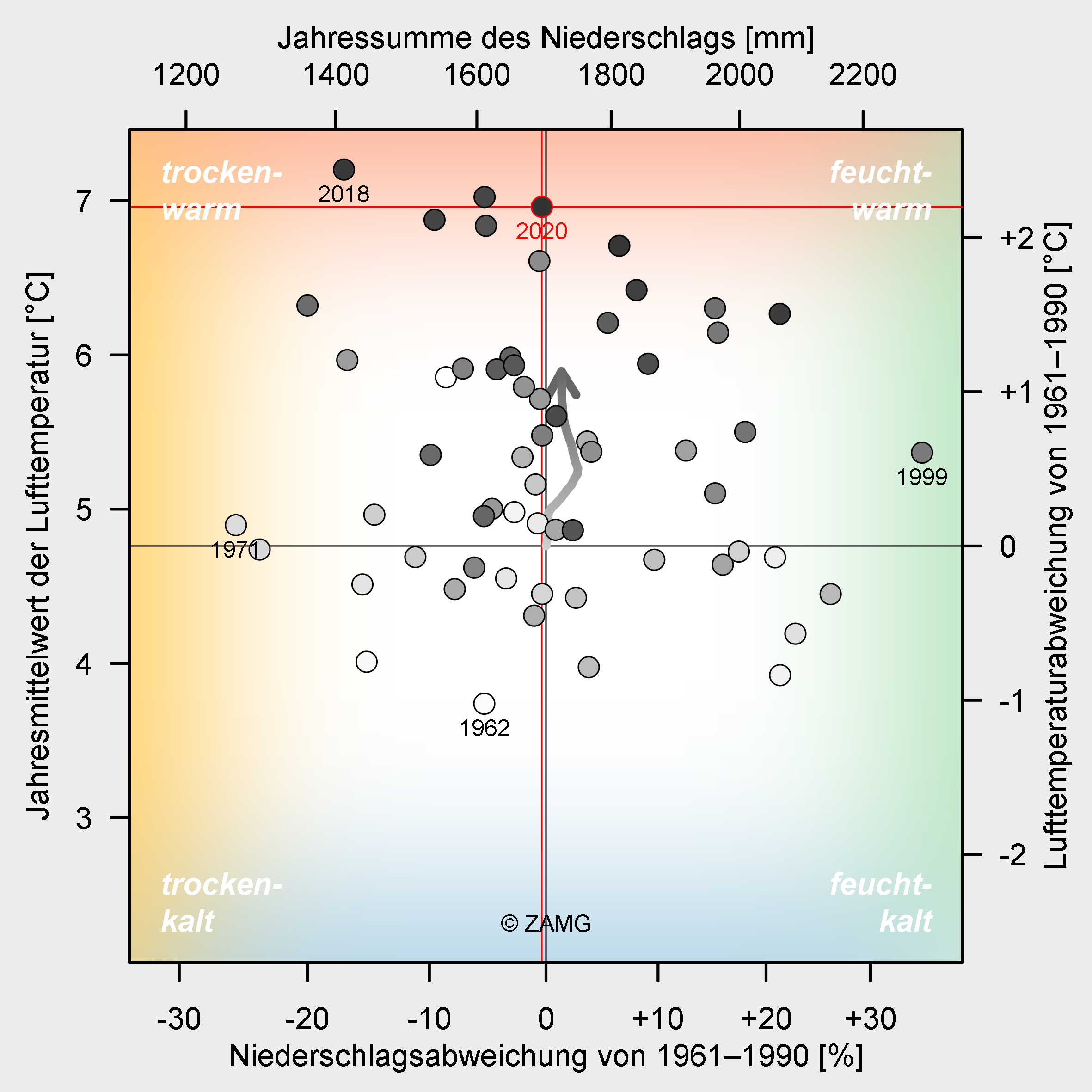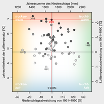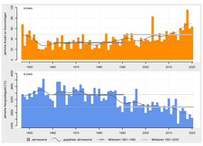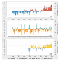 In 2020, Vorarlberg recorded its third warmest year in meteorological history. The year was 2.2 °C above average. January, February and April brought exceptionally high temperatures, each ranking among the four warmest months on record. The winter of 2019/20 as a whole was even the warmest since measurements began. The average annual total precipitation is unevenly distributed throughout the year. April and November were unusually dry in Vorarlberg, while February and August were particularly wet...