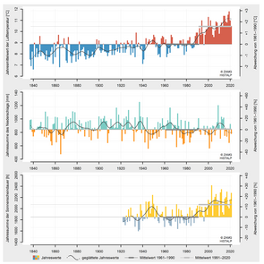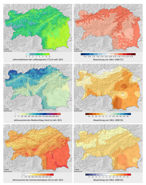 Although 2021 didn't quite reach the extremely high average temperatures of previous years, it was still notably warm, with a deviation of +1.2 °C. With a considerable precipitation deficit of 16%, 2021 was the driest year since 2003. Particularly low rainfall was recorded in western Styria. The series of very sunny years continued, with a surplus of 13% in sunshine hours. As a result of a prolonged heatwave, June was the third warmest and second sunniest since records began. Throughout the entire summer, Graz experienced 29 days as part of a heat period, compared to an average of just one day. Severe thunderstorms caused damage on multiple occasions, including on 30 July due to intense heavy rainfall in Graz...