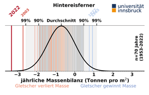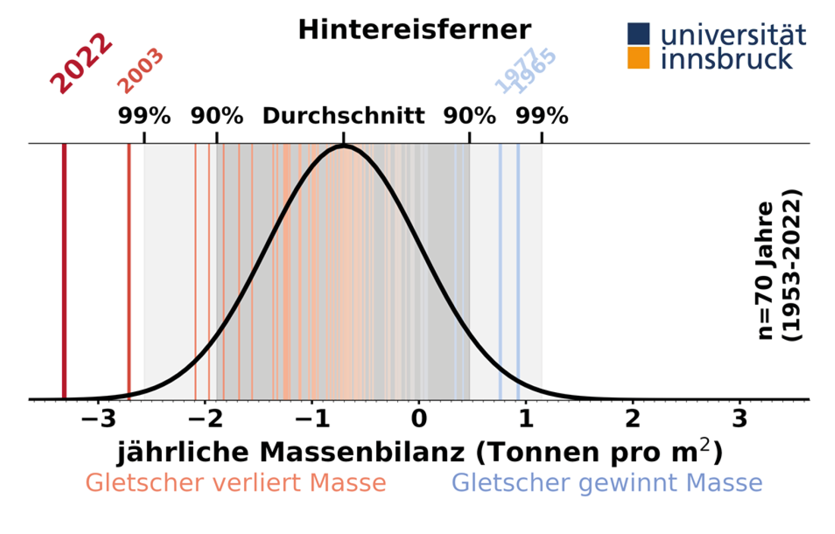 In the summer of 2022, Austrian glaciers lost around twice as much mass as the average over the last 30 years. According to GeoSphere Austria's climate balance, 2022 was the warmest year on record in the mountains. On top of that, 2022 was one of the sixteen driest and eight sunniest years since measurements began — a pretty unfavourable combination for our glaciers.