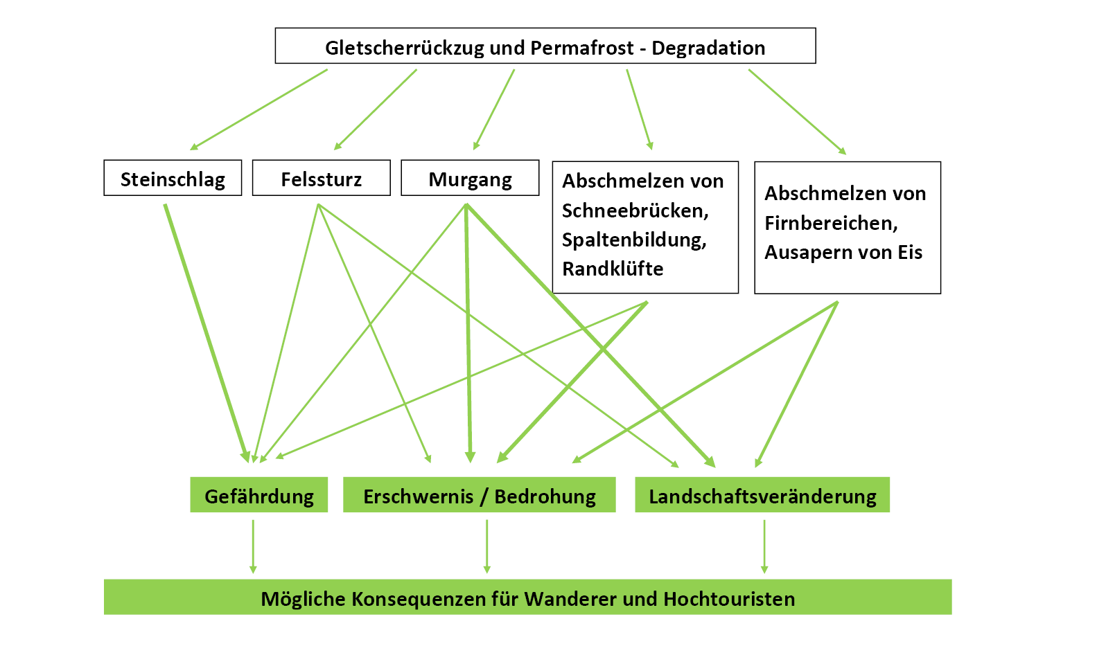 This year's Climate Status Report 2022 highlights what the melting of glaciers means for Austria. It's not just about a change in the landscape and consequences for (ski) tourism. The impacts are also being felt far beyond the high mountains. Glaciers and permafrost stabilise the ground in alpine areas. Melting ice and thawing permafrost soils can lead to rockfalls and debris flows, which pose a threat not only to alpine infrastructure but also to permanent settlement areas. In addition, mountain landscapes play an important role in the water cycle through snowmelt and glacial melt, and consequently for water and energy management. As glaciers shrink, there will be significant changes in meltwater volumes, as well as in water quality and the ecology of watercourses in mountain streams and downstream rivers. The Climate Status Report looks at what adaptation options and courses of action are available to prevent or mitigate negative impacts in the most severely affected areas.