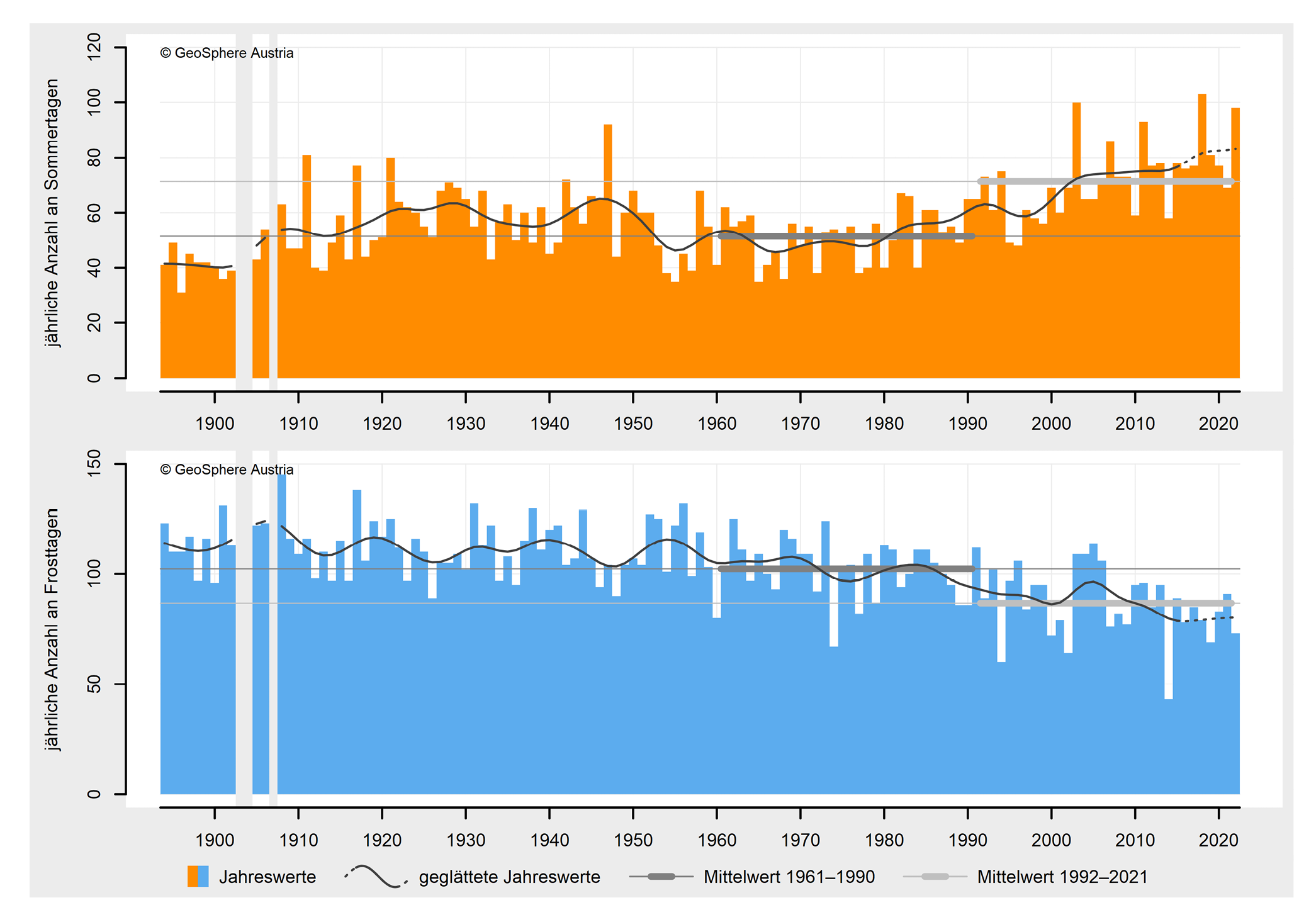 When using figures and graphics, please cite as follows: @ Klimastatusbericht Österreich 2022, Climate Review Tyrol, ed. CCCA 2023. Content and graphics from this report may be used for non-commercial purposes with acknowledgement of the copyright.