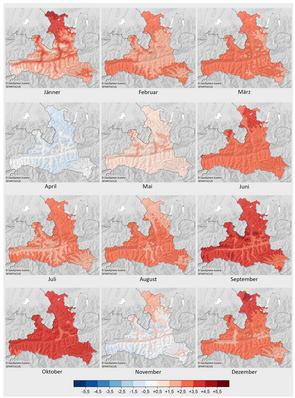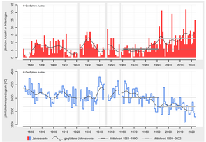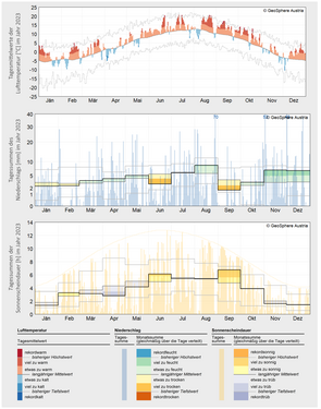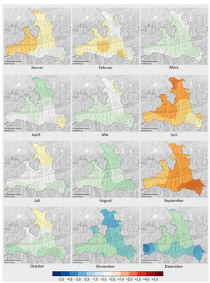 In 2023, Salzburg experienced its second warmest year on record. In September, a new monthly record was set, and together with the second warmest October, this led to the warmest autumn on record. June and September rank among the two driest months of the past 63 years, with precipitation deficits of 49% and 57% respectively. In August, November and December, unusually high amounts of precipitation fell compared to the climate average. At the end of August, heavy rainfall and the associated flooding and landslides caused extensive damage to buildings, infrastructure and agriculture…