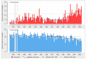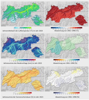 2023 was the second warmest year on record in Tyrol, behind 2022. Overall, six months ranked in the top 10, and September and October were extremely warm, which in turn led to the second warmest autumn in Tyrol's recorded history. It was only in June that conditions were notably too dry. April, August, November and December, on the other hand, were exceptionally wet, making 2023 the rainiest year in Tyrol since 1999. At the end of August, heavy rainfall caused widespread flooding, mudslides and high water levels across Tyrol. In October, a significant föhn storm resulted in one fatality, extensive damage, and closures of rail and road links…