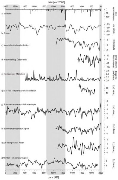 Auer, I., U. Foelsche, R. Böhm†, B. Chimani, L. Haimberger, H. Kerschner, K.A. Koinig, K. Nicolussi und C. Spötl, 2014: Vergangene Klimaänderung in Österreich. In: Österreichischer Sachstandsbericht Klimawandel 2014 (AAR14). Austrian Panel on Climate Change (APCC), Verlag der Österreichischen Akademie der Wissenschaften, Wien, Österreich, S. 227–300.
