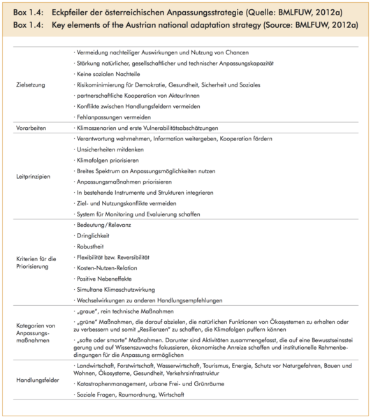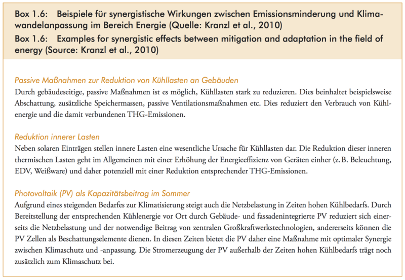 Bednar-Friedl, B., K. Radunsky, M. Balas, M. Baumann, B. Buchner, V. Gaube, W. Haas, S. Kienberger, M. König, A. Köppl, L. Kranzl, J. Matzenberger, R. Mechler, N. Nakicenovic, I. Omann, A. Prutsch, A. Scharl, K. Steininger, R. Steurer and A. Türk, 2014: Emission Reduction and Climate Change Adaptation. In: Austrian Assessment Report Climate Change 2014 (AAR14). Austrian Panel on Climate Change (APCC), Verlag der Österreichischen Akademie der Wissenschaften, Vienna, Austria, pp. 707–770.
