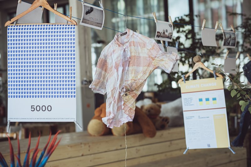 "Climate? Health? Production? - Reflection and a shift in perspective on clothing, consumption and the body, made tangible through photographs, installations, scientific posters and objects."