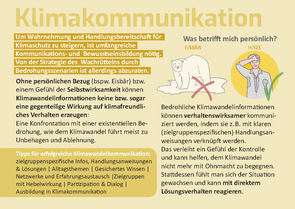 Motivating other people to adopt climate-friendly behaviour is a big challenge. So how do you manage it? Creating a personal connection, focusing on solutions rather than problems, and conveying knowledge in a way that's tailored to your target audience are all important elements of successful climate change communication. The golden rule is: knowledge alone doesn't lead to change — personal relevance and concrete options for action are essential.