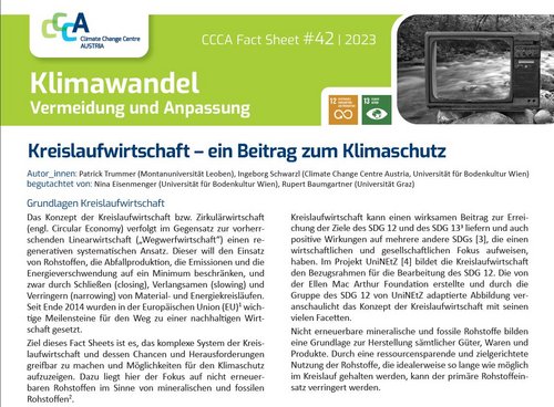 Neues CCCA-Fact Sheet mit dem Titel "Kreislaufwirtschaft – ein Beitrag zum Klimaschutz"