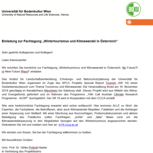 - Einladung zur Fachtagung „Wintertourismus und Klimawandel in Österreich“