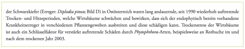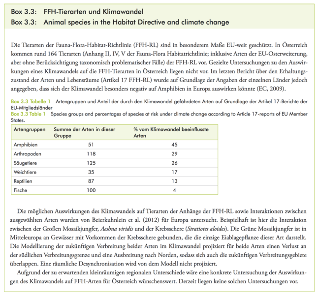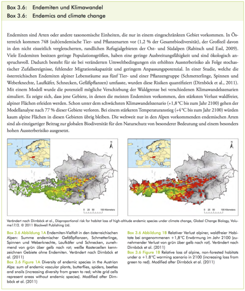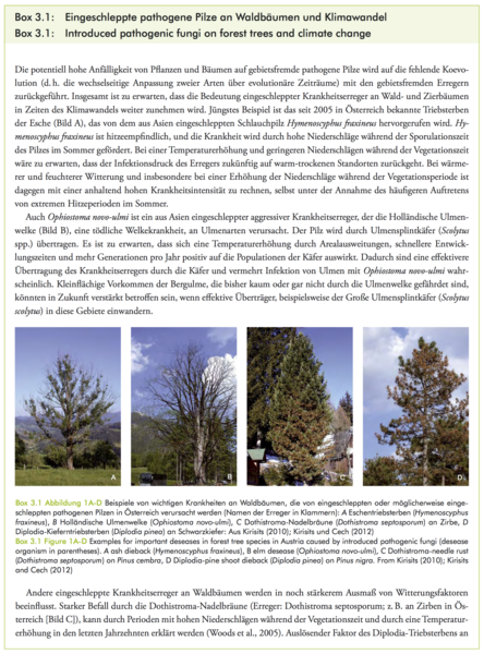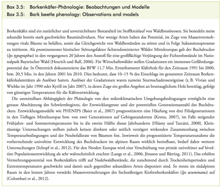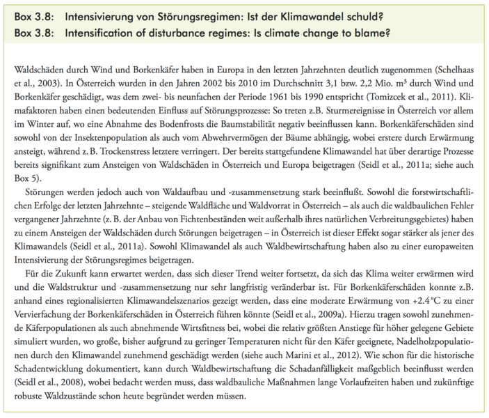 Lexer, M.J., W. Rabitsch, G. Grabherr, M. Dokulil, S. Dullinger, J. Eitzinger, M. Englisch, F. Essl, G. Gollmann, M. Gottfried, W. Graf, G. Hoch, R. Jandl, A. Kahrer, M. Kainz, T. Kirisits, S. Netherer, H. Pauli, E. Rott, C. Schleper, A. Schmidt-Kloiber, S. Schmutz, A. Schopf, R. Seidl, W. Vogl, H. Winkler, H. Zechmeister, 2014: Der Einfluss des Klimawandels auf die Biosphäre und Ökosystemleistungen. In: Österreichischer Sachstandsbericht Klimawandel 2014 (AAR14). Austrian Panel on Climate Change (APCC), Verlag der Österreichischen Akademie der Wissenschaften, Wien, Österreich, S. 467–556.