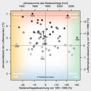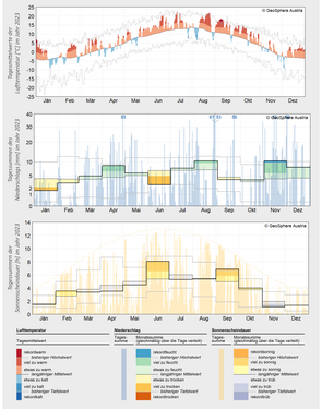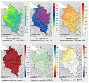 2023 war in Vorarlberg hinter 2022 das zweitwärmste Jahr der Messgeschichte. Insgesamt lagen fünf Monate unter den Top 10 und September und Oktober verliefen extrem warm, was wiederum zum zweitwärmsten Herbst in Vorarlbergs Messgeschichte führte. Nur der Juni war deutlich zu trocken. April, August, November und Dezember waren dagegen ausgesprochen niederschlagsreich und damit war es schließlich das niederschlagsreichste Jahr in Vorarlberg seit 1999. Ende August kam es in Vorarlberg durch intensive Regenfälle zu Überflutungen, Muren und Hochwasser. Im Oktober sorgte ein markanter Föhnsturm für zahlreiche Schäden, Stromausfälle sowie Bahn- und Straßensperren…