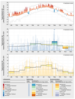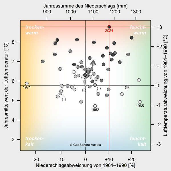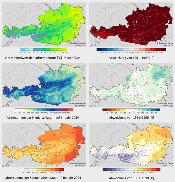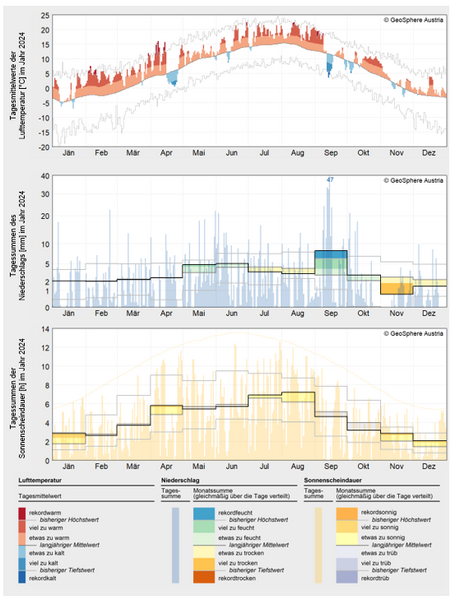 Langanhaltende Hitzewellen und Trockenheit auf der einen Seite und verheerende Starkregenereignisse auf der anderen. Das Jahr 2024 macht in Österreich erneut eindringlich die Konsequenzen der fortschreitenden Erwärmung und die Zunahme extremer Wetterereignisse sichtbar. Besonders folgenschwer war das Unwettertief „Anett“ Mitte September, das erhebliche Niederschläge und verheerende Hochwässer mit sechs Todesopfern in Österreich verursachte. Vom 12. bis zum 16. September regnete es in Zentraleuropa so viel wie noch nie seit Beginn der Aufzeichnungen. Die Niederschläge führten zu regional extremen Hochwasserabflüssen, die statistisch gesehen nur alle 1.000 Jahre auftreten (z. B. am Wienfluss).