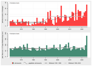 Ganz Niederösterreich wurde zum Katastrophengebiet erklärt, tausende Menschen mussten aus den betroffenen Gebieten evakuiert werden und erlitten schwere Schäden bis hin zur Zerstörung ihrer Häuser. Die Notwendigkeit, für solche Ereignisse künftig bestmöglich gewappnet zu sein, steigt parallel mit der Zunahme der Intensität und Häufigkeit dieser extremen Wetterereignisse. Mit dem Klimastatusbericht Österreich 2024 richten wir den Fokus daher auf bewährte Praktiken, neue Forschungsergebnisse, Strategien und Empfehlungen, die darauf abzielen, Schäden durch zunehmende Wetterextreme zu minimieren. Diese Erkenntnisse sind entscheidend für die Entwicklung wirksamer Maßnahmen und die Unterstützung von Entscheidungsträger:innen, um langfristig widerstandsfähigere Gemeinschaften aufzubauen.